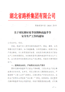 汛情就是命令,責(zé)任重于泰山。湖北路橋迅速發(fā)布《關(guān)于切實(shí)做好汛期安全生產(chǎn)工作的通知》《關(guān)于切實(shí)做好夏季汛期和高溫季節(jié)安全生產(chǎn)工作的通知》,安排部署加強(qiáng)汛期安全防范工作。各分子公司、各項(xiàng)目積極響應(yīng),按照“三管三必須”要求,抓好汛期安全風(fēng)險(xiǎn)防控工作,嚴(yán)格落實(shí)安全生產(chǎn)責(zé)任,狠抓安全防范措施落實(shí),堅(jiān)決筑牢防汛“安全堤”。全體員工繃緊防汛這根弦,堅(jiān)決克服麻痹、僥幸心理,以“時(shí)時(shí)放心不下”的責(zé)任感,落細(xì)落實(shí)各項(xiàng)防汛措施,確保安全度汛。