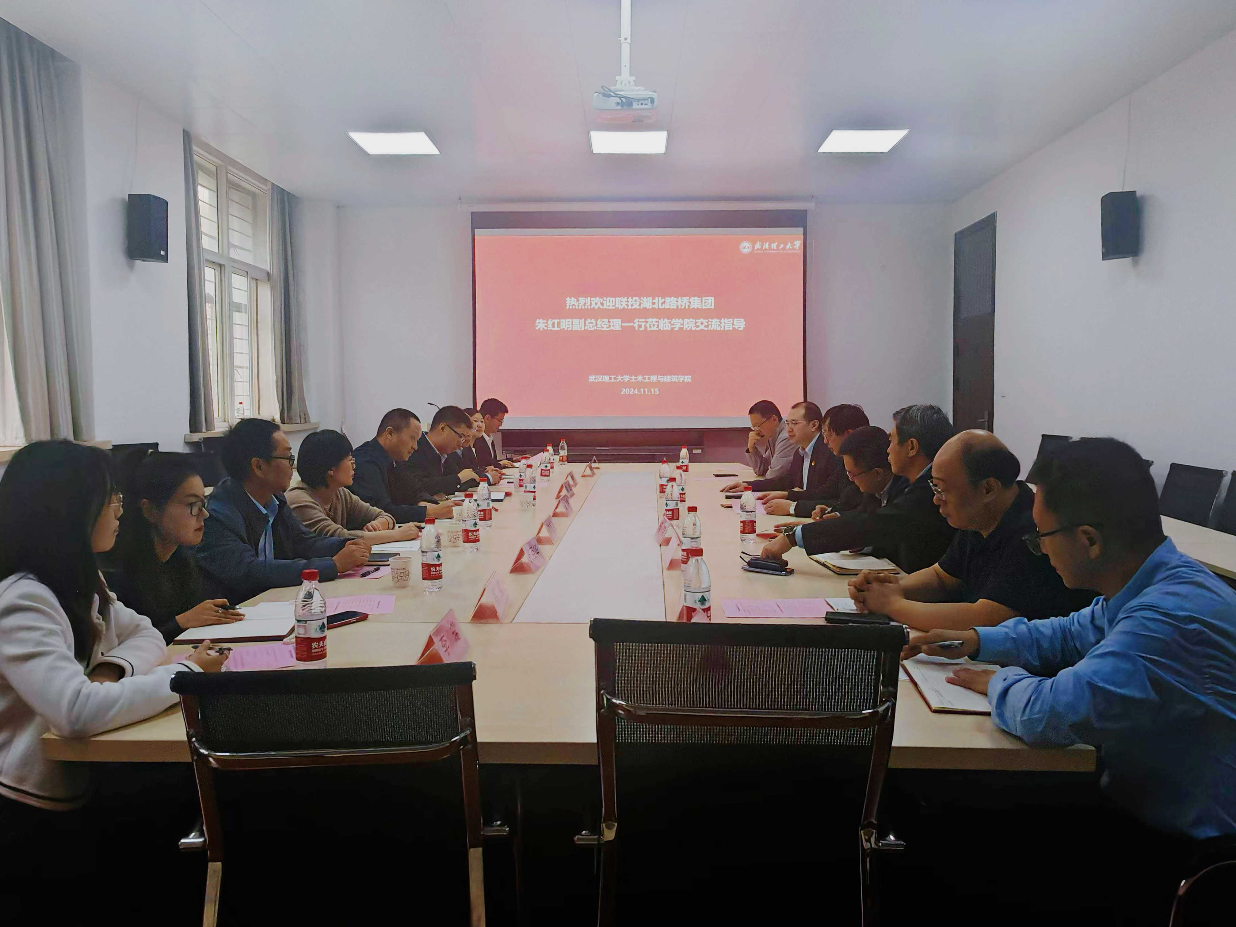 吳斌對湖北路橋一行的到來表示熱烈歡迎,并簡要介紹了土建學院發(fā)展歷史、學科建設、人才培養(yǎng)、科技創(chuàng)新等最新情況。他表示,近年來,學院在持續(xù)拓展科技成果轉化的新渠道、新途徑,湖北路橋作為省內工程建設領域重點企業(yè),始終秉持開放合作的理念,積極與各高校建立“產(chǎn)學研”實踐基地。2018年,湖北路橋與武漢理工大學成功建立了“聯(lián)合人才培養(yǎng)實踐基地”,這一成果為雙方深化合作打下了堅實的基礎,當前雙方共建“博士后創(chuàng)新實踐基地”和“卓越工程師”校企聯(lián)合培養(yǎng)項目,不僅是順勢而為,更是對既有合作模式的深化與升級,雙方要攜手促進學術研究與產(chǎn)業(yè)實踐的深度融合與協(xié)同發(fā)展,不斷推動行業(yè)技術進步和產(chǎn)業(yè)升級,實現(xiàn)互利共贏的新局面。
